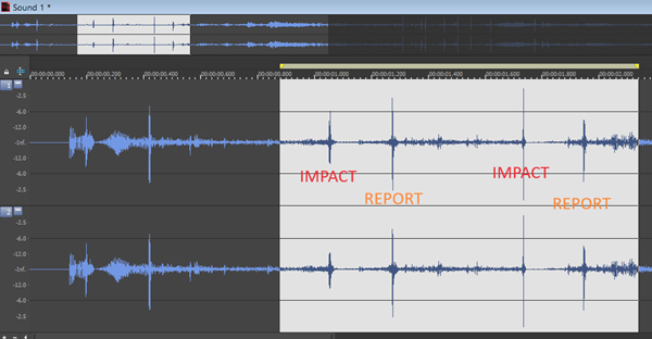 We have the audio of the rifle fire. Audio analysis under war to determine the distance of the shooter. Rifle rounds arrive BEFORE the report is heard. Here’s a sound signature of one of the shots. The first blip is the rifle round impacting target. The second blip (taller one) is the report of the rifle. Calculations coming shortly…