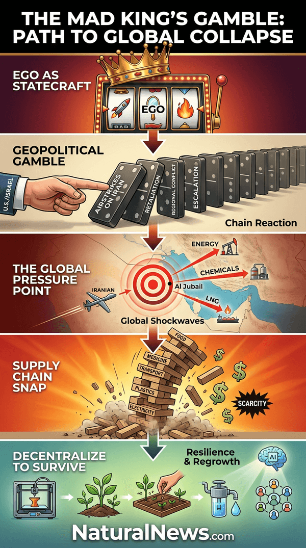 Life after the destruction of the Persian Gulf’s energy infrastructure would unleash a ‘Mad Max’ scenario that is difficult to fully comprehend. The conveniences we take for granted — reliable electricity, affordable food, accessible medicine — are literally built on the flow of hydrocarbons from the Persian Gulf. When that flow stops, the complex, just-in-time supply chains that deliver everything from fertilizer to microchips will snap. Soaring prices will be the least of our worries; scarcity will be the rule. Smaller nations, lacking strategic reserves or diversified economies, will face societal collapse first. As I warned last month, we stand ‘on the precipice of what appears to be a meticulously engineered destruction of two critical systems that sustain life: food and energy infrastructure.’ [11]