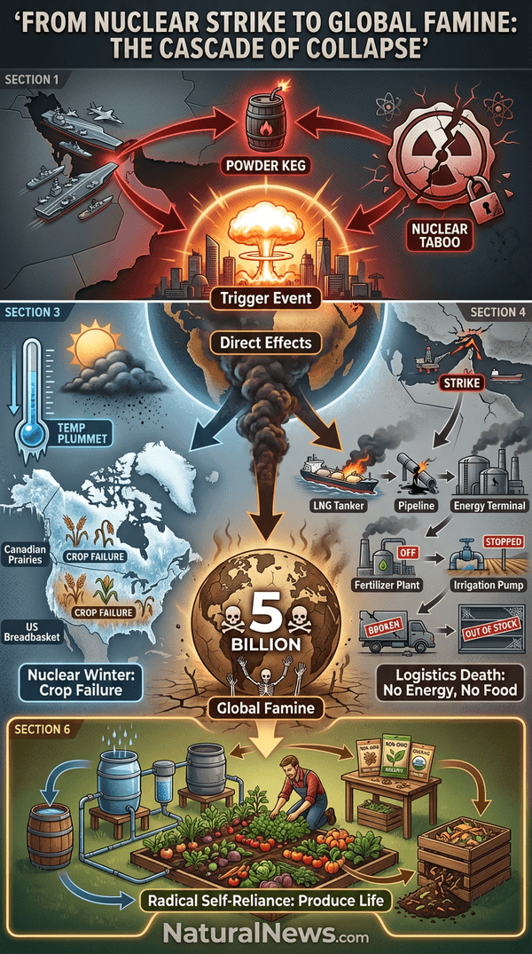 The corporate media obsesses over economic indicators and political polls, but they are missing the forest for the trees. I believe the true collapse trigger is not economic; it is a geopolitical one, specifically the proliferation and probable use of nuclear weapons in the Middle East. The intellectual and engineering capacity of Iran is deliberately underestimated by Western media [1]. Once the first tactical nuke is used, all rational containment disappears. The warnings from independent scientists are clear: even a limited nuclear exchange can plunge the planet into a ‘nuclear winter,’ collapsing global agriculture for years [3]. The true famine, the one that will starve billions, is not here yet. But it is coming, and our current food system fragility is merely a warning shot of the systemic vulnerability we have engineered through centralization and globalist dependency.