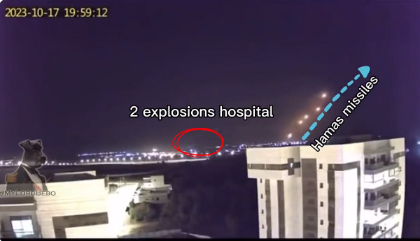 BREAKING: Compelling video evidence points to Israeli AIR BURST bomb striking al-Ahli hospital grounds, killing hundreds of Palestinian civilians as they slept on courtyard grounds adjacent to the parking lot